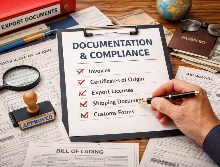 Handling invoices, certifications, and all legal trade paperwork.